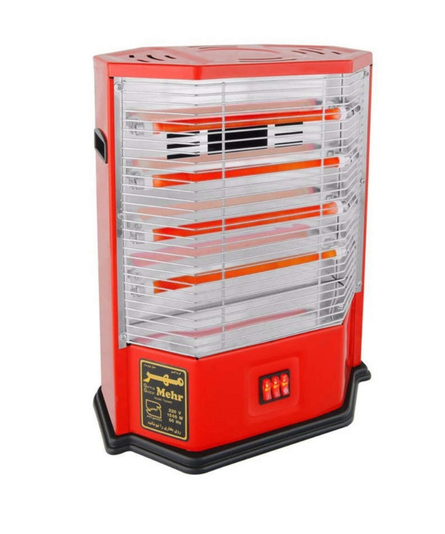 این دستگاه دارای ۴ المنت شیشه ای یا سیم پیچ فلزی است که با داغ و سرخ شدن سیم پیچ ها تولید حرارت می کند و به دلیل نداشتن شعله حتی در مکان هایی با تهویه نامناسب نیز می توان بدون کاهش میزان اکسیژن گرمای مطلوب و مناسب را ایجاد نمود.